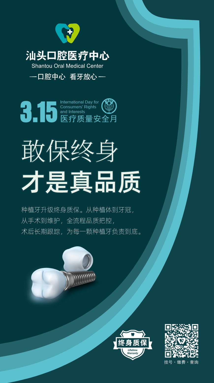 3.15医疗质量安全月 | 汕头口腔医疗中心种植牙升级「终身质保」,敢承诺才是真品质